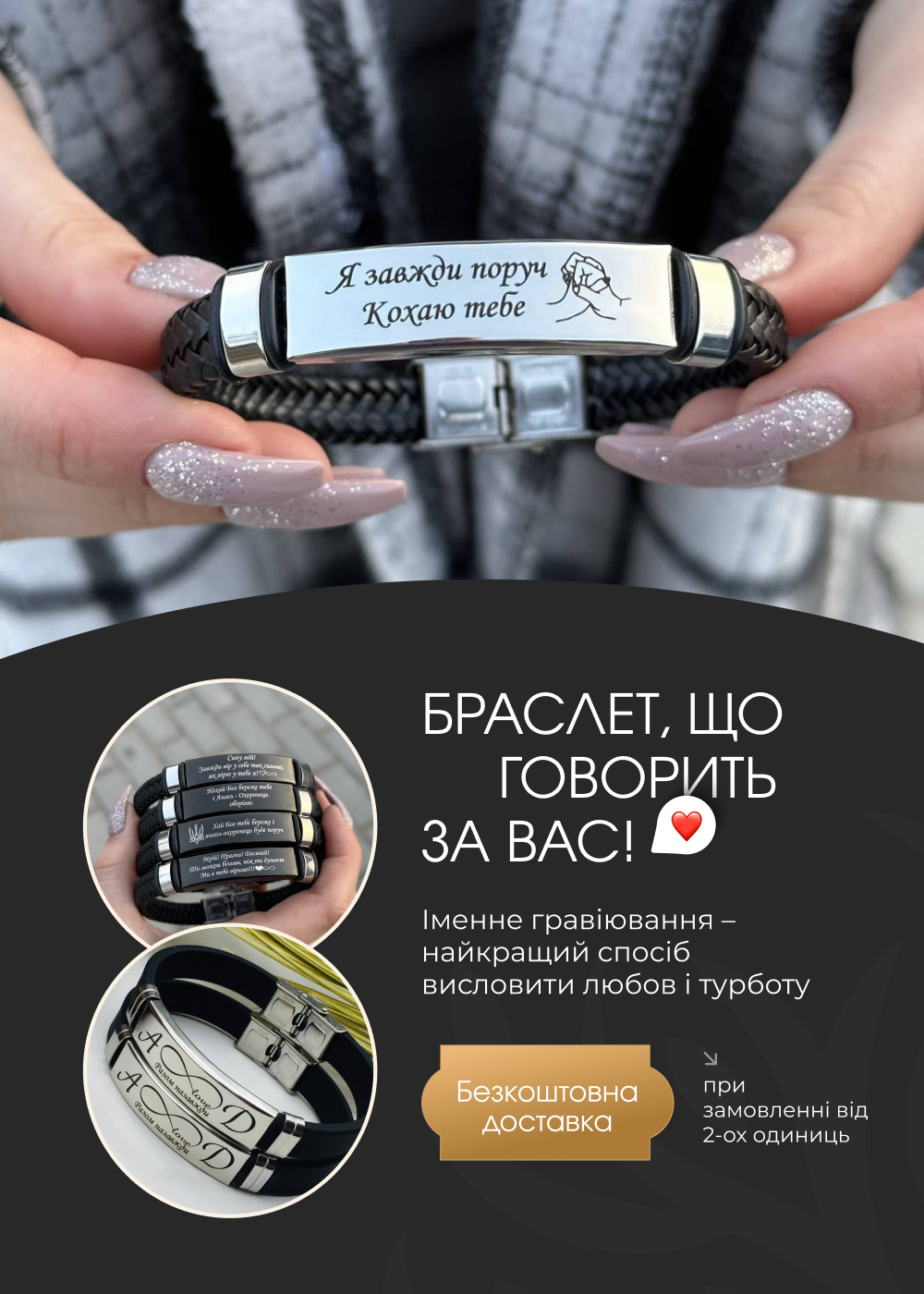 💖 Браслети, кулони, жетони, запальнички та брелоки з гравіюванням – імена, дати, важливі слова та символи, які завжди поруч.
