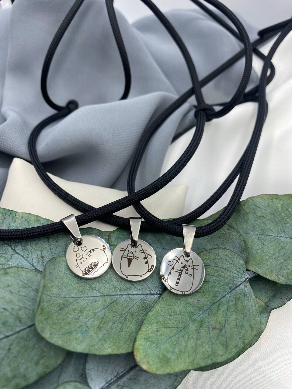 Парні кулони Котики на ланцюжках із нержавіючої сталі