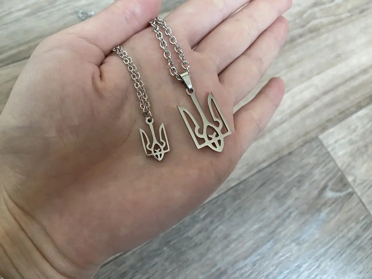 Парні кулони Тризуб з нержавіючої сталі 316 L. Кулони сріблястого кольору на якірних ланцюжках. Красивий аксесуар і чудовий подарунок
