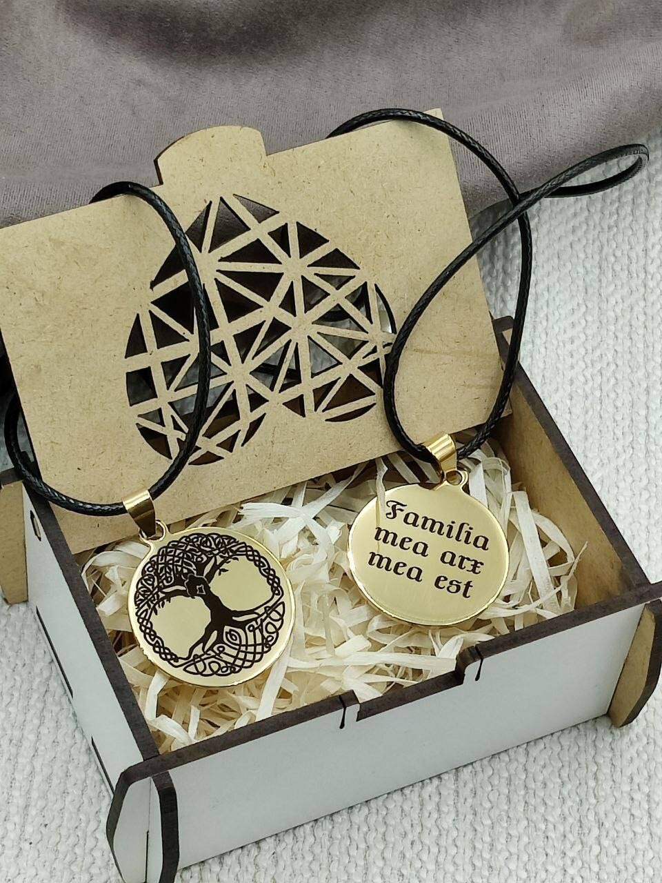 Кулони упаковані у подарункову упаковку.