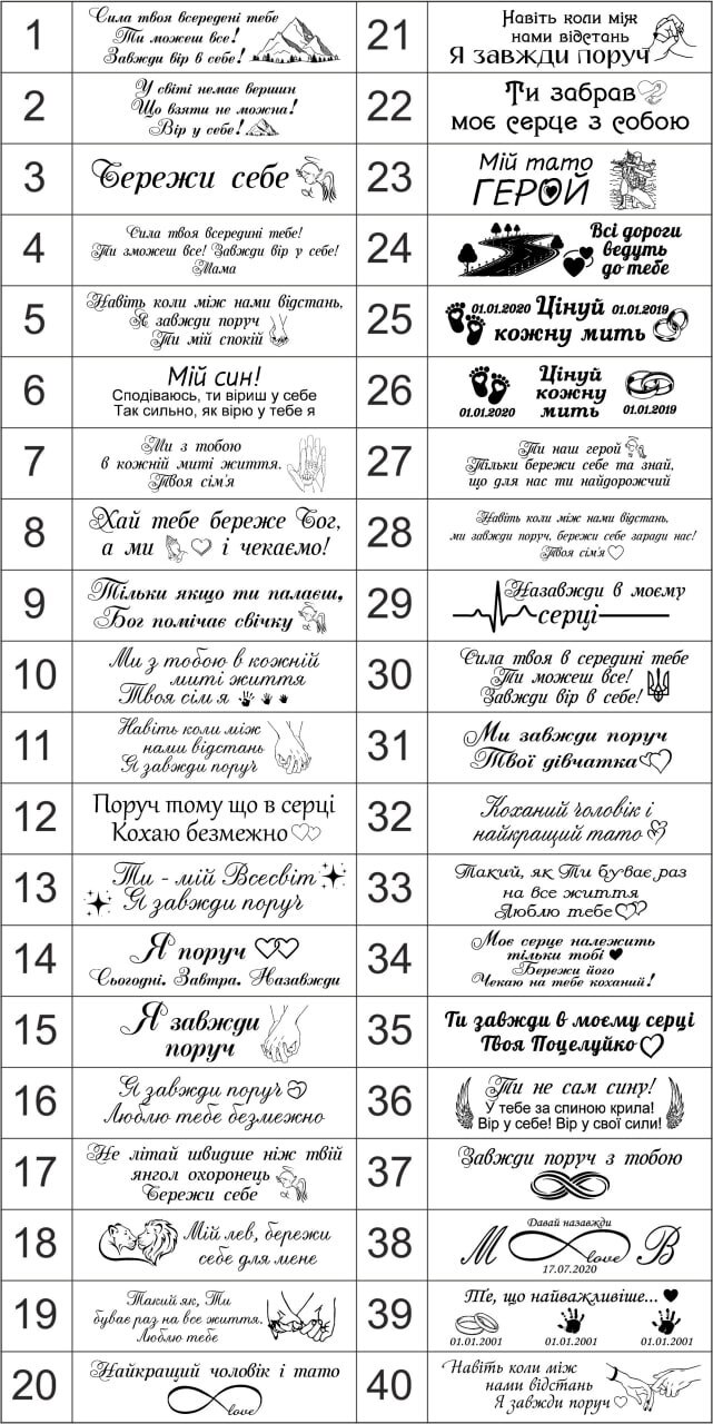 Індивідуальне гравіювання допоможе висловити почуття і подарувати аксесуарам неповторність та унікальність. Вона вже включена у вартість продукції.