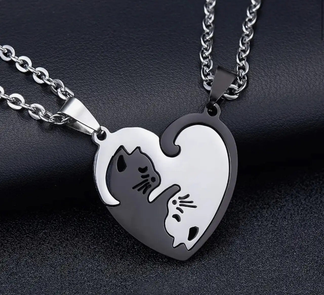 Парні кулони Кішки Love на ланцюжках із нержавіючої сталі
