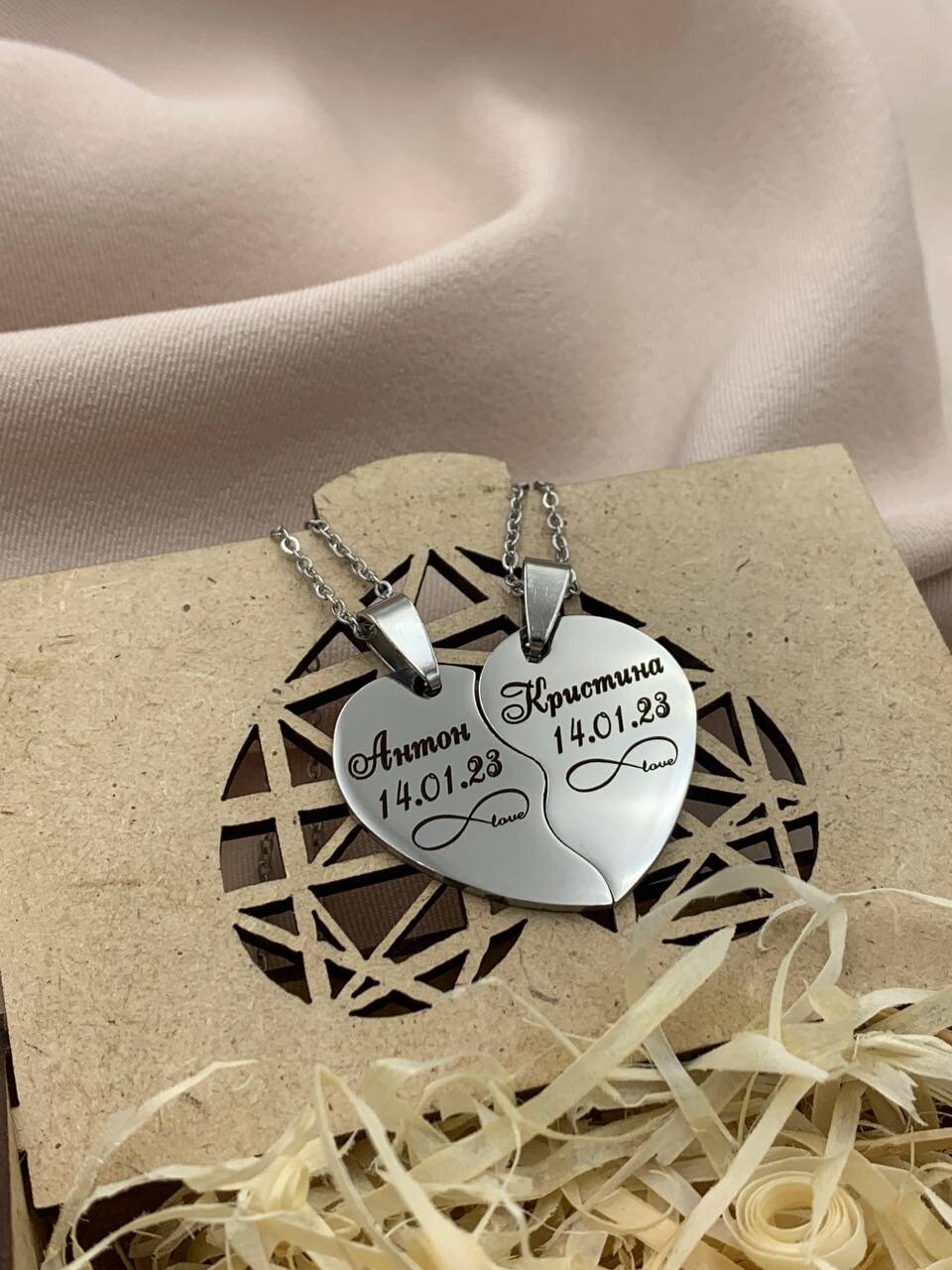 Парні кулони з Вашими індивідуальними написами.