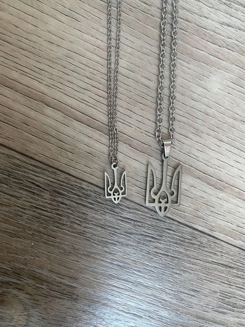 Парні кулони Тризуб з нержавіючої сталі 316 L. Кулони сріблястого кольору на якірних ланцюжках. Красивий аксесуар і чудовий подарунок