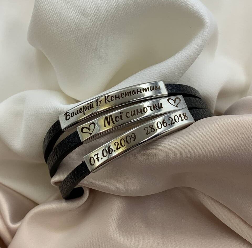 Браслет з гравіюванням буде прекрасним подарунком на будь-яке свято.