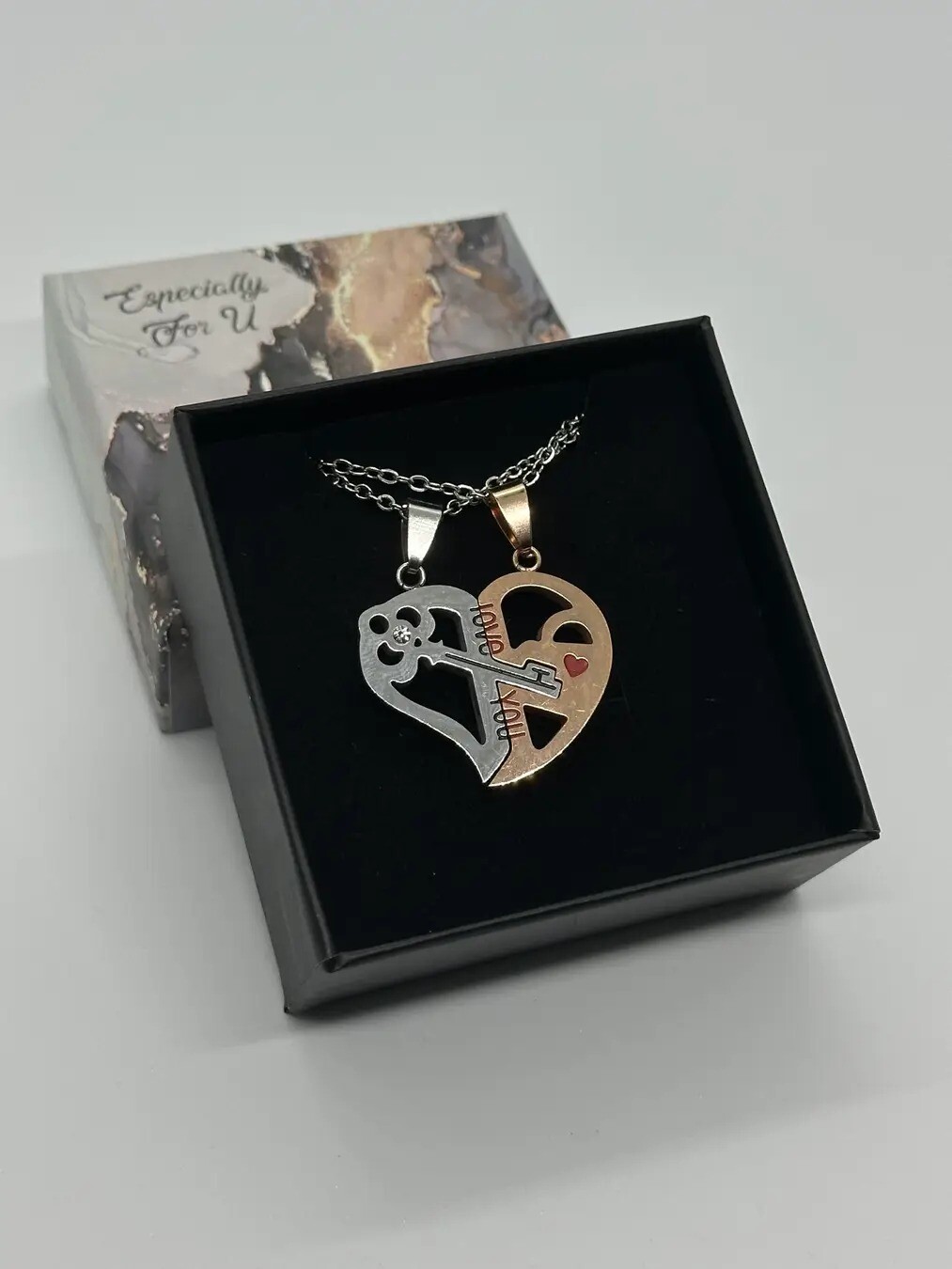 Парні кулони для закоханих Ключ у серці Love You Gold - чудовий подарунок для закоханої пари. Виготовлені кулони із високоякісної нержавіючої сталі.