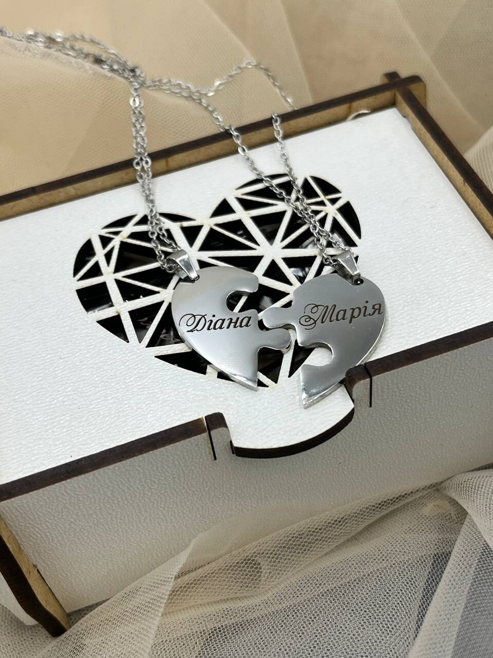 Ціна вказана за пару кулонів та пару ланцюжків у коробочці.